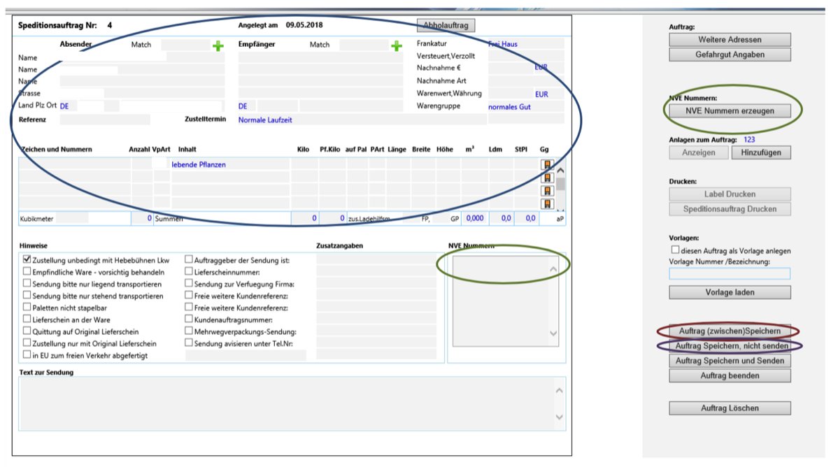– Wenn alle Sendungsangaben eingegeben wurden, Auftrag (zwischen-)speichern